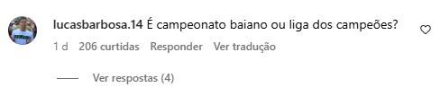 Muitos internautas reclamaram na postagem de divulgação no Instagram do Jacuipense. Alegaram que o time acredita estar disputando uma partida de “Libertadores”, em ironia.