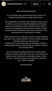 Em nota divulgada ainda na madrugada de quinta, a família comunicou a suspensão das atividades do boteco e prestou homenagem ao capitão, descrito como “fundador, amigo e alma do Boteco do Salomé”. O texto divulgado na rede social do estabelecimento destaca a trajetória de Salomão à frente do espaço, marcado pela convivência, acolhimento e construção de laços entre clientes e amigos. Segundo a nota, a pausa nas atividades ocorre para vivenciar o luto e cuidar dos familiares.
